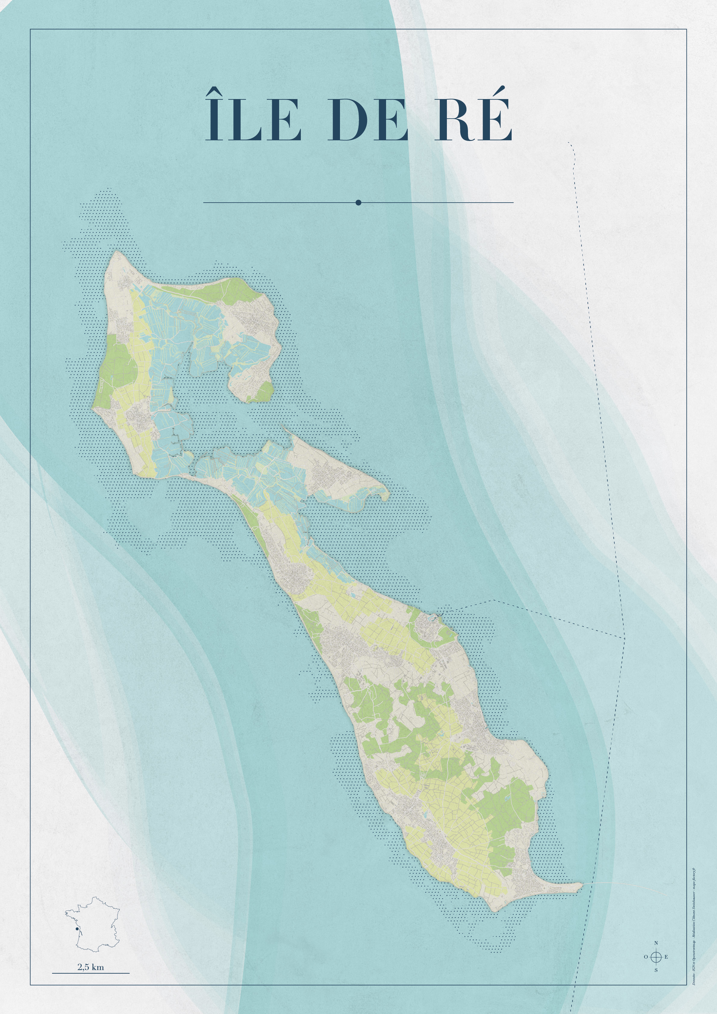 Cette carte de l’île de Bréhat, aussi surnommée “l’île aux fleurs”, dévoile les couleurs et la richesse de son écosystème. Entre faune et flore variées, petits ports et architecture de charme, cette île est un joyau breton à l’atmosphère pittoresque. Un hommage à ses paysages colorés et vivants.
